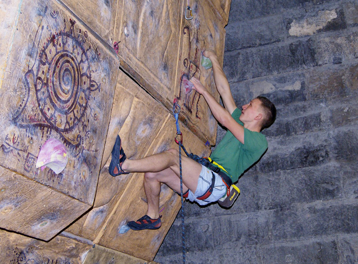 Начальный учебный круг – по горизонтали, вам нужно только перебраться с одного края стенки на другой в нескольких сантиметрах от пола. Справились, пора лезть вверх, зачем мы сюда и пришли. Первые шаги даются легко, особенно, если вы усвоили, что подниматься нужно не на силе рук, а за счет движений ног.