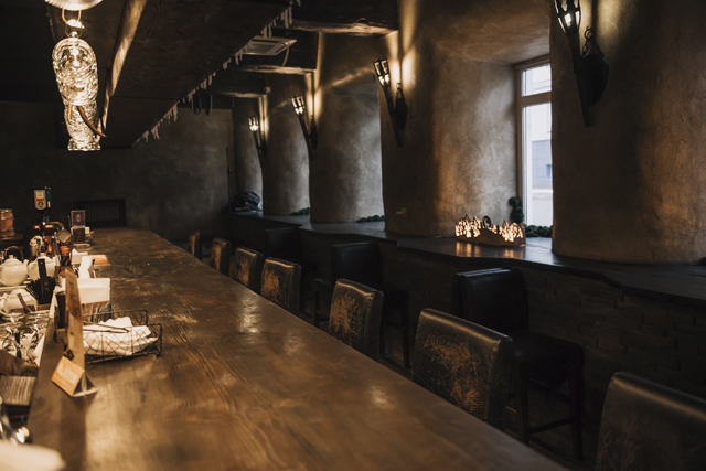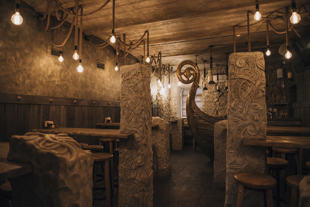 Бар делиться на шесть пространств: «Каминный зал» (в Каминном зале всё сделано из камня, массивного дерева, и, конечно же, есть камин), «Медовый бар» (по большей части состоит из большой барной стойки), «Портовый зал» (напоминает палубу корабля: везде канаты и даже есть декорация старинного корабля викингов), «Трофейный зал», ресторан на втором этаже и летняя веранда.