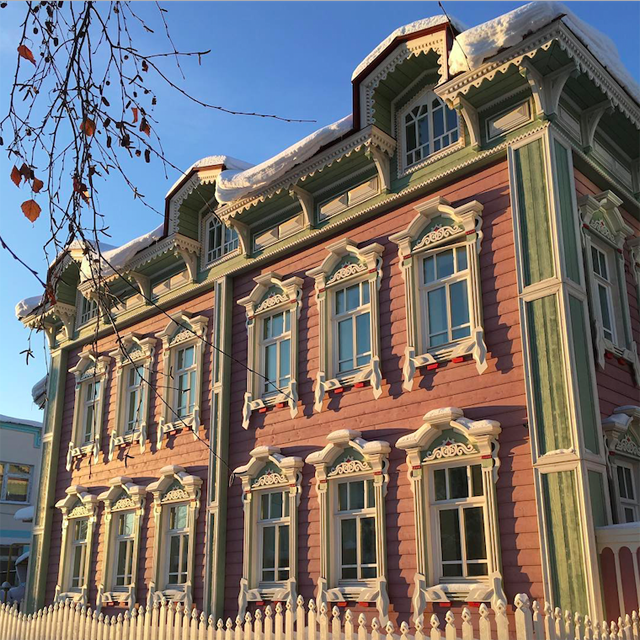 – Два дома по улице Горького – №15 и 19. Первый принадлежал купцу Кекину, второй – купцу Чукашеву. Объединяют их прекрасные веранды второго этажа, взглянув на которые, вы с лёгкостью сможете представить весь размах русской купеческой жизни».