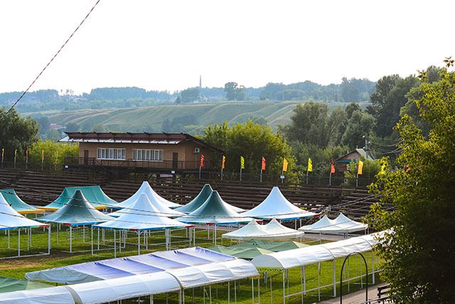 Продравшись сквозь тернии и лесополосу Александровского сада, мы выбрались к большой открытой поляне, где как раз расставлялись шатры для татарстанской ярмарки. Табличка на карте гордо сообщала, что это Шишкинские пруды. Именно здесь меня встретили массовые магниты с изображением великого художника. Над прудами разместился и его музей.