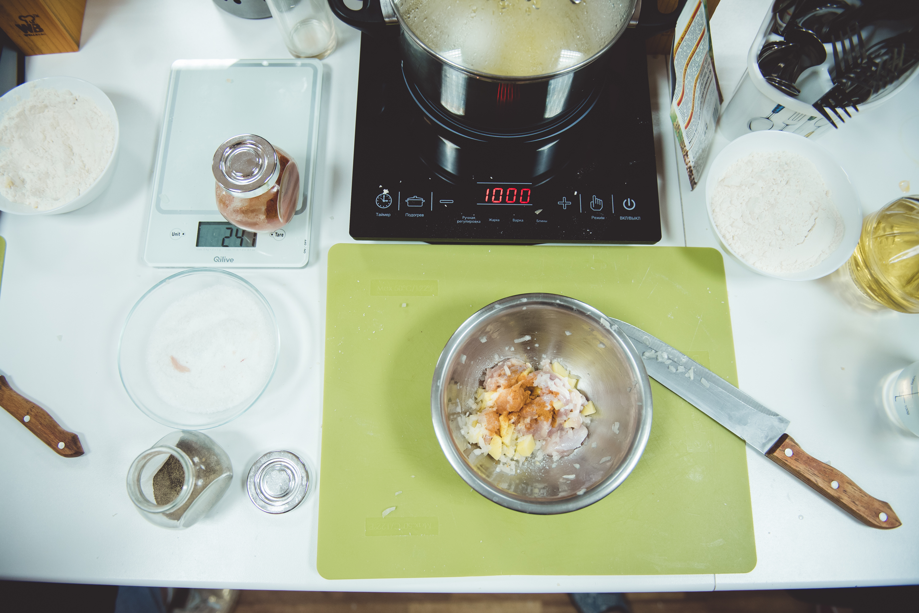 Вечер вторника. Я, гуляючи, спускаюсь от офиса к улице Петербургской и заворачиваю в кулинарную студию «Тарелка». Здесь сегодня стартует курс мастер-классов по татарской кухне. Первое, что бросается в глаза – моё рабочее место на этот вечер. Я ведь не одна мечтала побывать на сьёмках программы «СМАК» в детстве? Так вот, галочку над этим пунктом можно уже поставить. Хоть карандашом. Рабочая поверхность, множество ингредиентов в мисочках расставлены на расстоянии вытянутой руки, ножи-доски-сковородки и даже маленькая плитка. Итого – большая игровая комната «Кухня».