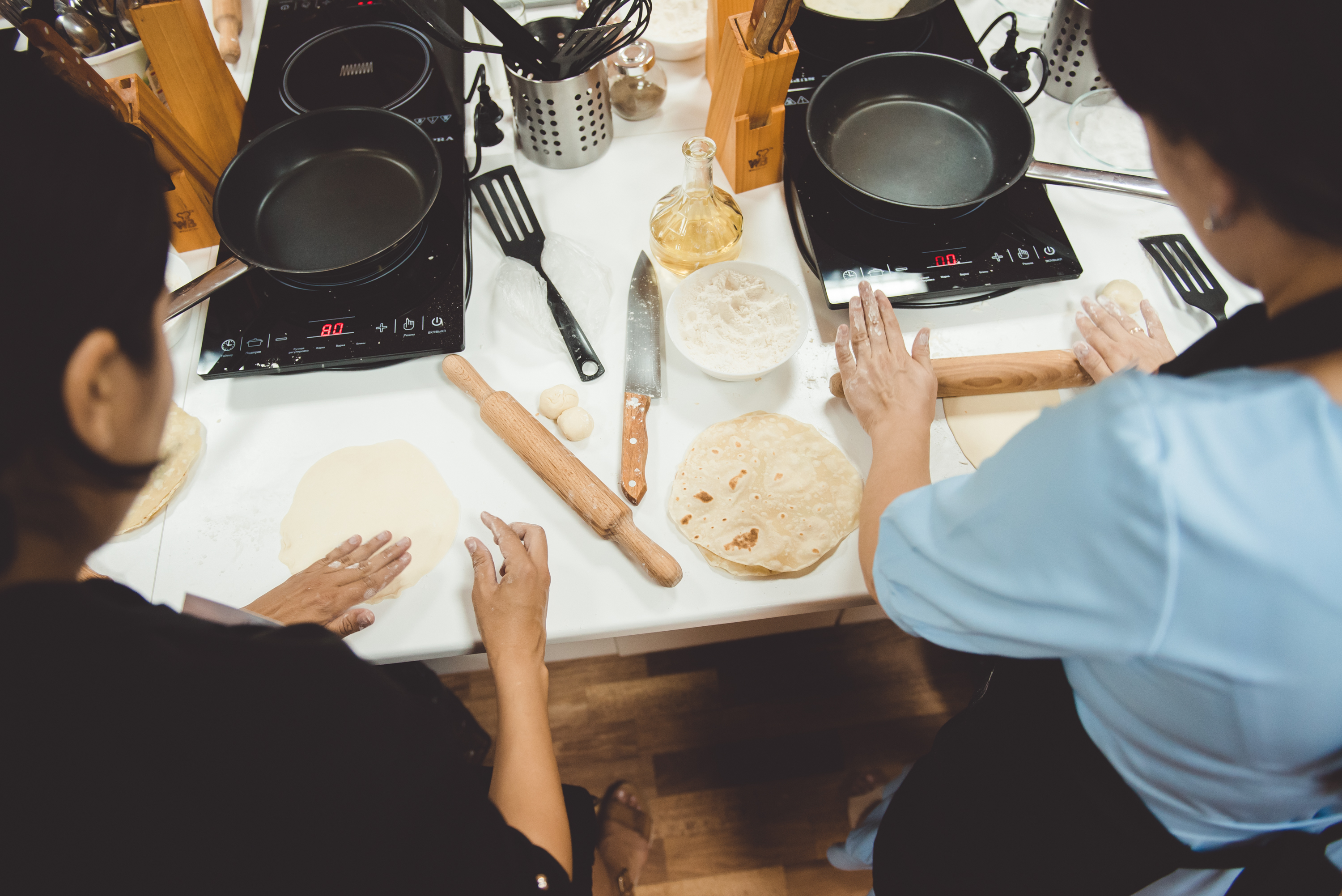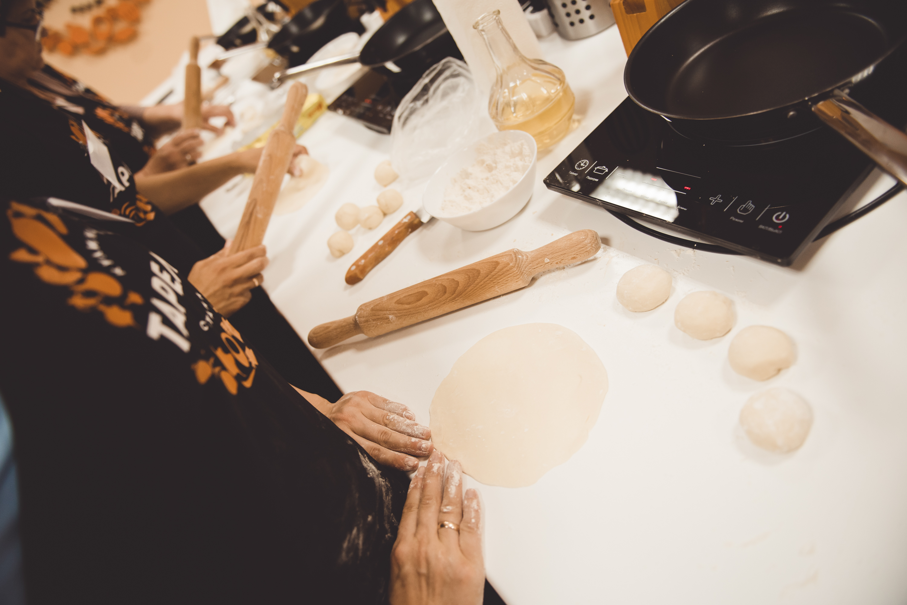 Первой загвоздкой при заготовке начинки для элеша становятся пропорции: оказывается, из заданных равных ингредиентов в виде лука, картошки и куриной ножки можно выжать разное количество начинки. А уж как точно оценить специи «по вкусу»? Я хватаюсь за баночки по нескольку раз, всё прибавляя перец и шафран, но моя заготовка всё равно выглядит бледнее, чем у соседок. А ещё я начинаю отставать от группы. Благодаря помощи нашей преподавательницы, я догоняю процесс готовки к раскатыванию кругов из теста. И почти тут же обгоняю всех! Кто ж знал, что единственный кулинарный навык, освоенный мной в детстве – это заготовка ровных кругов? Где-то на минуту я забираю всеобщее внимание на себя, пока, увлёкшись, не оказываюсь перед идеальным дном, начинкой и крышечкой, которые никак не желают скрепляться между собой узорным плетением. Как оказалось, я переборщила с мукой в процессе раскатки, и элеш получился аристократически бледным и непослушным, так что скрепить его удалось только нашей старшей мастерице.