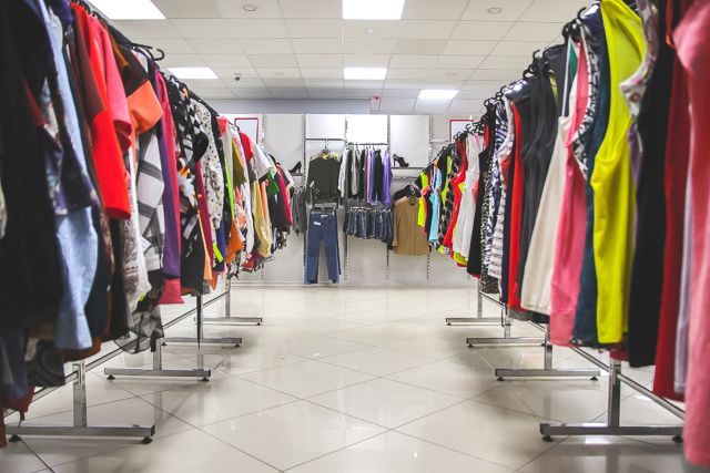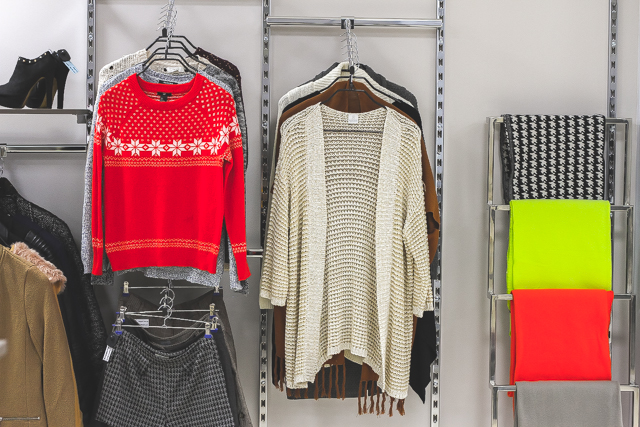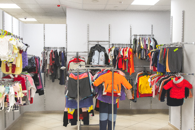 Располагается магазин на втором этаже торгового центра на улице Четаева, 58б. Зал просторный, очень светлый. Первое отличие от всех предыдущих секондов, в которых я была – нет большой корзины с наваленной кучей вещей, в которой ты должен копаться в поисках своего размера, нужного фасона или приемлемой цены. Аккуратные ряды с одеждой, висящей на плечиках. В одной части – женские вещи, которые занимают почти 70% пространства, в другой – мужские, есть отдельная зона для детской одежды и обуви.