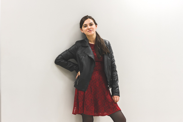 Беспроигрышный вариант для осенней пары – кожанка. Я её надеваю с бордовым кружевным платьем, которое игриво раскрывается, если начать кружиться. Именно чёрной кожаной курткой дополняю вечерний вариант осеннего образа для романтичной прогулки.