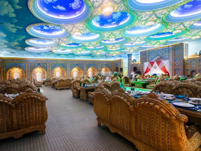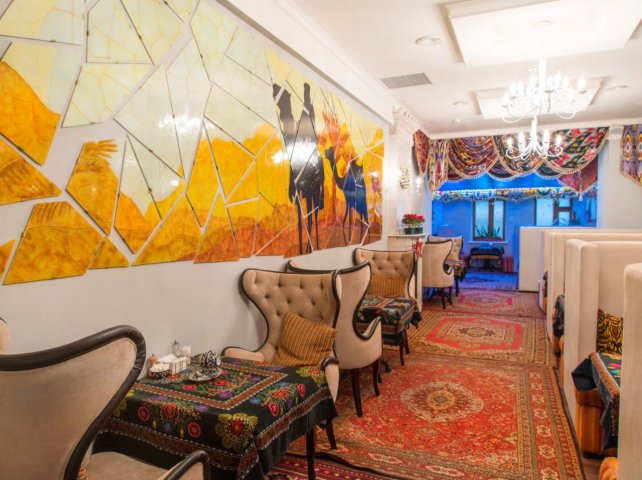 Меню достойное. Тут и гужа, и мастава, и манпар, и привычная для нас уже шурпа. Работают доставка еды и даже свой восточный базар! То есть, можно купить цветы, парфюм, специи, сладости в самом кафе. Считается подходящим в Татарстане местом для проведения банкетов, так как кухня – полностью халяль.