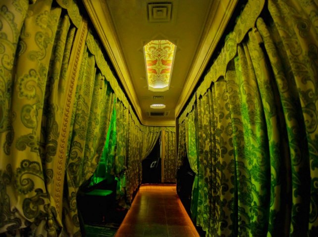 Внутри царит восточная атмосфера. Правда, уединённых кабинок нет – это такой «open space» с ощущением клубного, тусовочного места. Играют концерты, проводят мероприятия, делают бесконечные фотоотчёты. Днём бывают мероприятия для детей.