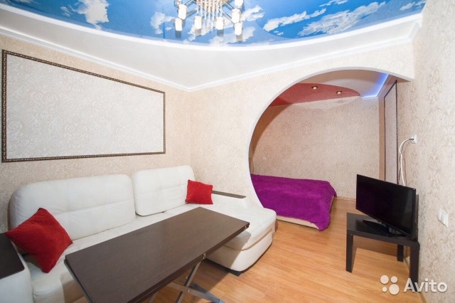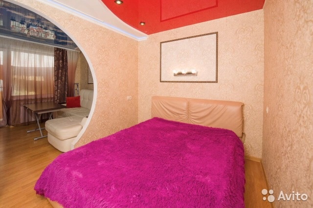 В такой квартире чувствуешь, что, наконец, нашёл рай на земле. На потолке небо и неплавающие облака, а под тобой белый диван. Дизайнер квартиры решил, что повидавший рай должен посмотреть и на ад, и потому в соседнюю комнату добавил кровать с огромным пушистым розовым пледом, а потолок раскрасил в красный.