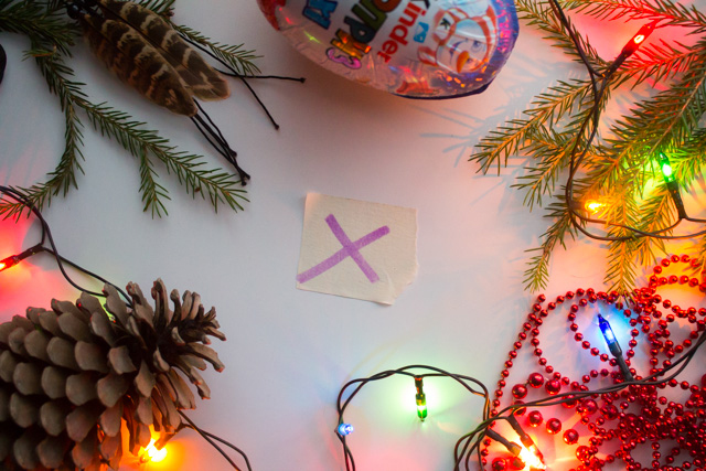 Сразу скажу, что ничего из того, что сейчас вы увидите в примерах, я не покупала специально. Просто ходила по квартире и подбирала красивые штуки, в том числе заглянула в холодильник и в кухонные шкафчики. Из «неслучайного» здесь только еловые ветки, и то, потому что я случайно их увидела у бабушки на рынке и купила, не думая о статье. Да и вообще, Новый год же.