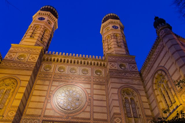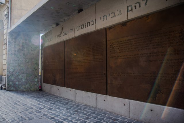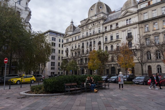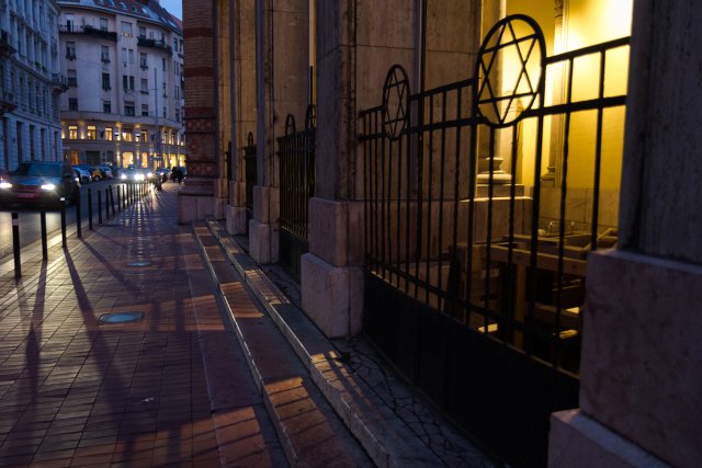 Жизнь кипит, и кажется, что о невесёлом прошлом восьмого района, где располагалось еврейское гетто, уже никто и не помнит… но нет – сворачиваю из бурлящего потока и нахожу самую большую в Европе синагогу, здесь же на столбе табличка об освобождении гетто в 1944 году советскими солдатами.