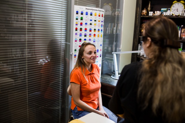Помню, переступила порог «Слим Клуба», а дальше – как в хорошем сне. Ты садишься напротив нескольких цветных бутылочек. Сначала ничего не чувствуешь, просто смотришь, разглядываешь, присматриваешься... Через минуты три ты начинаешь замечать, что к некоторым цветам тебя прямо тянет, и вот на некоторые ты совсем не реагируешь, а от других не можешь оторвать свой взгляд. И смотришь ты… не то, чтобы просто смотришь, а ты впиваешься глазами в этот цвет, как будто это долгожданный стакан воды или порция любимой еды... То ли ты смотришь на бутылочку, то ли она на тебя.