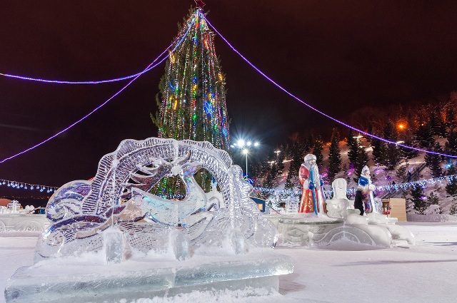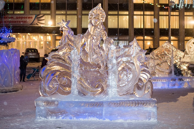 Друзья, даже огромный ледяной кит, который красит детские камзолы в яростный синий, является предметом юной любви. Что уж говорить о многочисленных петухах, Дедушке Морозе, Снегурке и прочей ледяной живности, на которую можно залезть с меньшими стараниями, попозировать в родительский смартфон или просто сломать себе голову. Но можно ли назвать елочку на Дворце Спорта украшением города. Ну, нет.
