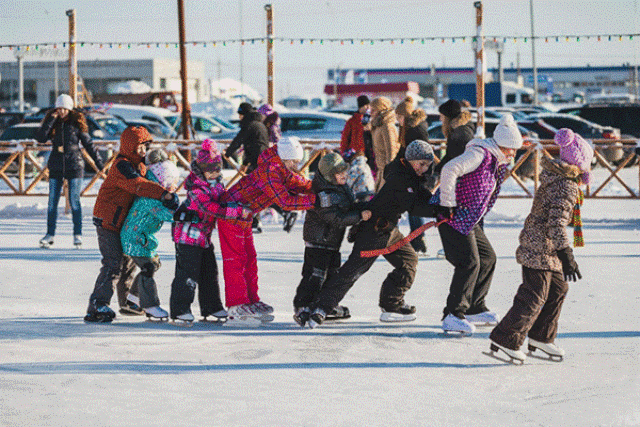 Детям до 6 лет выход на лед бесплатно, прокат коньков 50 руб.