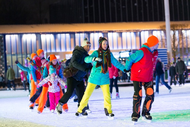 Для взрослых: 100 рублей - прокат коньков; 150 рублей - выход на лёд.