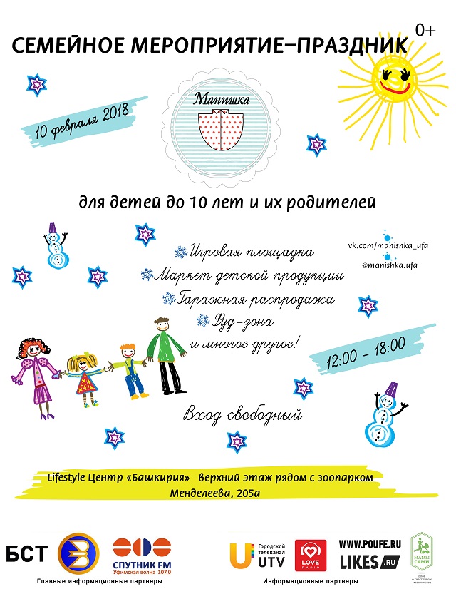 За несколько лет проведения праздника он успел полюбиться многим уфимским семьям и не только. Как всегда, в познавательной зоне гостей ждут мастер-классы и увлекательные занятия для детей, по соседству в это время можно будет купить самые нужные и полезные товары для малышей и их родителей, а в зоне «Манишки» каждая мама может устроить настоящую гаражную распродажу: побыть в роли продавца и выставить на прилавки детские вещи в хорошем состоянии. В перерывах между шопингом и приятным общением посетители смогут увидеть яркие выступления вокальных и танцевальных творческих коллективов Уфы.