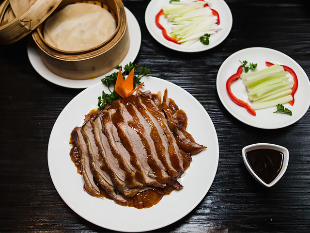 Утка по-пекински! Да, в Уфе можно поесть ту самую утку по-пекински! Первый раз я попробовала её на Пхукете. Вкус этой утки по-пекински невозможно ни забыть, ни воспроизвести, ни повторить. Это либо она, либо уже какое-то другое блюдо. В «Индокитае» выносят огромную тарелку с тонко нарезанной утятиной. Карамелизованная кожица с прослойкой утиного жирка и совершено постное диетическое мясо. В порции 10 больших кусков, и это невозможно съесть одному! К мясу выносят деревянную кадушку, в которой томятся тёплые рисовые лепешки, приготовленные на пару. Также к блюду прилагаются ломтики свежего огурца и сельдерея, соевый соус. Рустем показал, как правильно есть – берёшь лепёшку, кладёшь в неё утку, овощи, заворачиваешь и ешь! Вот за уткой по-пекински точно сюда! 1330 р. за порцию.