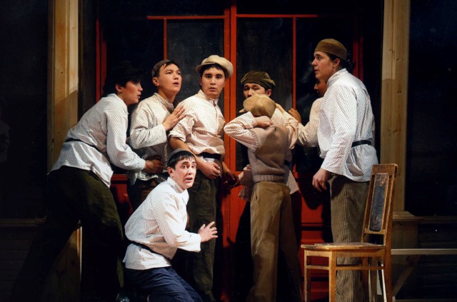 Спектакль по Мустаю Кариму не отбирает у сирот светлого детства. Тут тебе и школьные шалости (чего стоит запах от натертой чесноком парты на весь зал!), и уважение к воспитателю, и забота о друзьях, и трепет перед настоящей семьей и домом. Да еще и среди актеров есть маленькие мальчики с этой их старательной игрой и большими ушками! «Настоящую нежность не спутаешь ни с чем». Ее не перечеркнуть ни портрету Сталина на заднем фоне, ни грустному финалу постановки.
