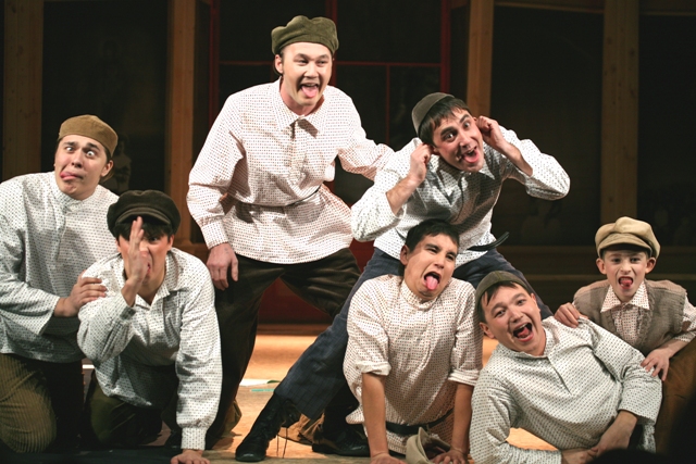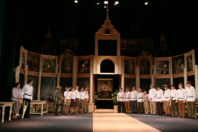Спектакль по Мустаю Кариму не отбирает у сирот светлого детства. Тут тебе и школьные шалости (чего стоит запах от натертой чесноком парты на весь зал!), и уважение к воспитателю, и забота о друзьях, и трепет перед настоящей семьей и домом. Да еще и среди актеров есть маленькие мальчики с этой их старательной игрой и большими ушками! «Настоящую нежность не спутаешь ни с чем». Ее не перечеркнуть ни портрету Сталина на заднем фоне, ни грустному финалу постановки.