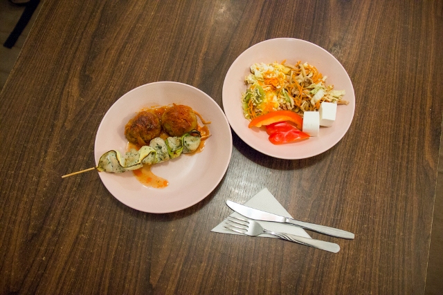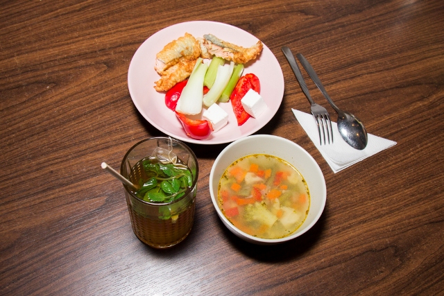 «Буффет — это одно из моих любимых мест в Уфе, здесь очень хороший выбор блюд всех видов. Хотите салат? Да все салаты отличные! Мой самый любимый — это летний салат с руколлой, огурцом, ломтиками зелёного яблока, кешью, апельсином и лаймом. Да, я готов приезжать сюда с утра только за этим салатом! Из основных блюд могу отметить японский рис темпура, свинину под сыром с овощами и, конечно же, beef Stroganoff! Я не большой любитель супов, но здесь начал их тоже пробовать — понравились гороховый суп и окрошка. Ещё меня очень впечатлил суп с тремя видами мяса и оливками — невероятно сытный и наваристый (Прим. Likes: речь идёт о супе-харчо).