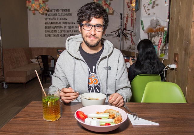 «Я люблю Buffet за возможность самому сочетать различные ингредиенты. Своего рода лего. Мне как вегетарианцу такой формат очень подходит. Не нужно запариваться, из чего состоит то или иное блюдо. Вся еда перед тобой, просто берешь тарелку и кладешь в нее все, что понравилось. В основном, я сюда прихожу за овощным супом. Обожаю его! Большой плюс кафе – удобная локация и оформление интерьера в стиле лофт. Я прихожу не только поесть, но и назначаю здесь деловые встречи. Непринужденная атмосфера заведения располагает к душевному разговору. А еще десерты. Их так много, что сложно порой пройти мимо. В общем, отличное место для таких, как я (вегетарианцев)».