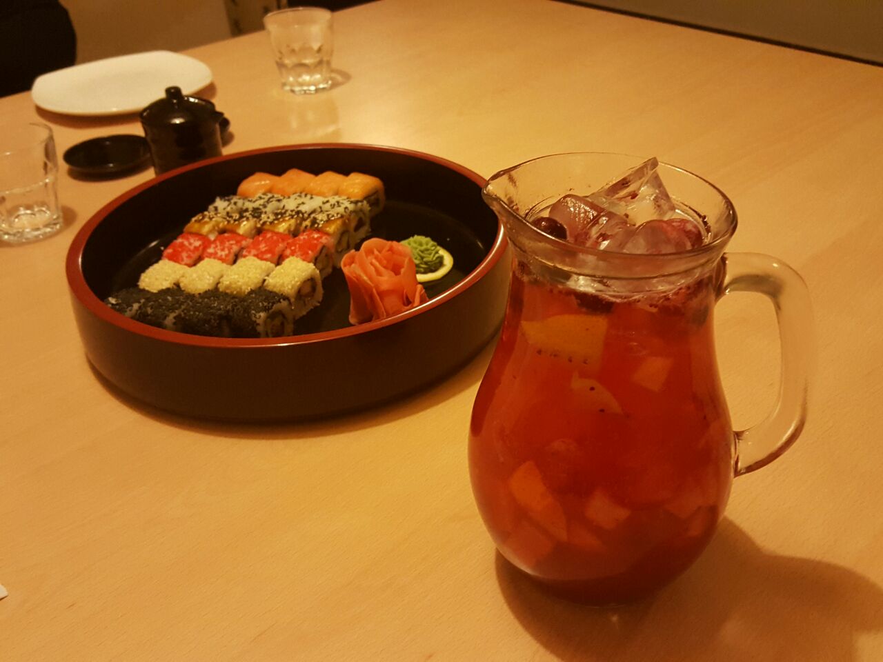 «Притяжение» смотрели с огромным удовольствием, потом еще в дружеском чате обсуждали, скачали финальный саундтрек на телефон. А потом пошли в «Сёгун» есть суши. Мы заказали небольшой сет из классических роллов и литр имбирно-клюквенного лимонада, чтобы не переедать на ночь глядя.