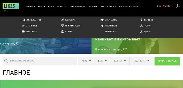 1. Если вы обычный горожанин, то можно зайти на сайт likes.ru и выбрать, куда пойти прямо сегодня, прямо сейчас. Все вечеринки, фестивали, презентации, афиши театров и кино, движуха для детей - все тут. Про некоторые события и фильмы можно прочитать обзор и посмотреть трейлер, чтоб потом не разочаровываться. Для этого нужно навести курсор на слово «События» и выбрать. У нас модная навигация и есть поиск по месту (если вам ни за что не хочется выбираться из Черниковки, например) и дате.