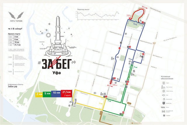 Старт и финиш забега в Уфена площади перед Конгресс-холлом, здесь расположится яркий стартовый городок с фан-зонами для всех гостей праздника.