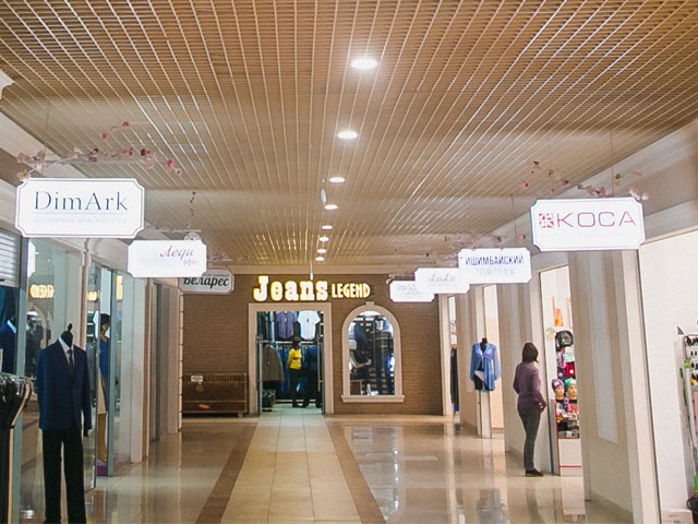 Вот, посмотрите на вывески. Они маленькие, все аккуратные и одинаковые. Стоимость их очень низкая. Мы с арендаторами плотно работаем, ведь уровни развития менеджмента торгового центра и арендаторов абсолютно разный. Мы их тащим за собой. В некоторых торговых центрах бывает наоборот. Администрация сидит спокойно, а арендаторы их дёргают – давайте это сделаем, давайте то сделаем. Наши арендаторы развиваются с нами. Так было и с ЦТиР «Мир».