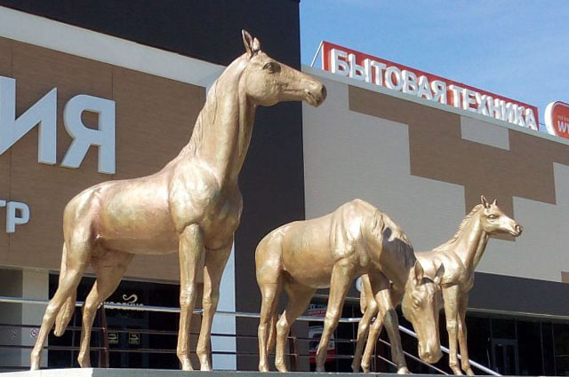 А.В.: Да, конечно, она же магнитит, затягивает. Ещё нужно было сделать центральную скульптуру. Очень много предложений было, но мы исходили из того, что должна быть ассоциация торгового центра с Республикой. Помните, его переименовали, он был до этого «Башкирия». Потом он стал торговый центр «Башкортостан». Мы вернули историческое название. Я очень много откликов слышал потом в интернете, что очень хорошо, что мы вернули название. Возвращаясь к скульптурам – Республика с чем ассоциируется? – понятно, с мёдом, но мы не могли пчелу сюда поставить. Соответственно – лошадей, великолепная композиция получилась. Через скульптуру мы дали посыл, что это семейный комплекс. Представляете, если бы стоял только один конь? Нужно было, чтобы ассоциировалось ещё и с семьей. Поэтому тут жеребёнок, лошадь и конь. Нам удалось, таким образом, по-новому вернуться в старое. В новом обличии. Мы не скрываем, что это у нас реконцепт.