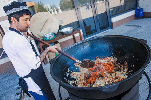 А ещё у нас самый большой казан в Уфе. Это тоже фишка, как и самая большая скамейка и самые большие картины.