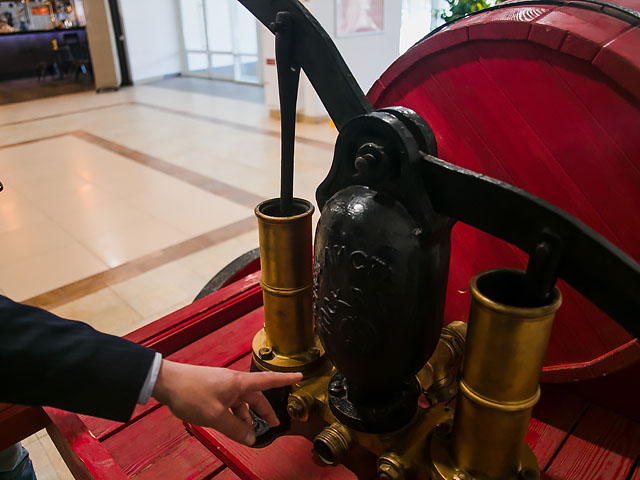 А.В.: Здесь много арт-объектов, это всё мои идеи. Вот это уникальная вещь (показывает на пожарную помпу) – она полностью литая, её отреставрировали. Если ты захочешь её купить, ты её не купишь. Я это купил в антикварном магазине на Кирова. Купил и подумал: надо сделать арт-объект. И вот, пожалуйста. Вокруг насоса была уже сделана эта телега. Это же всё творчество, ты идёшь, и – хоп! – у тебя «стрельнуло».