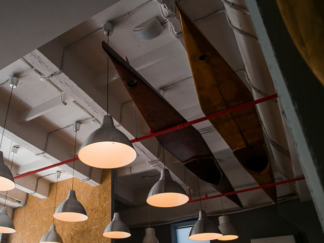 А.В.: Здесь всё у нас по-другому. Такой стиль «лофт». Вот лодки, которые мы спасли. На одной из этих лодок выступала уфимская спортсменка, заняла призовое место. А эту немецкую лодку привезла с собой в Уфу. Её хотели уничтожить, нам пришлось забрать.