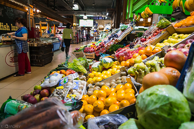 А.В.: Идём на нулевой уровень, там «Базар». Это тоже наш собственный якорь, как альтернатива продуктовому магазину. К нам, кстати, до сих пор «Магнит» хочет встать. Но мы не пошли по этому пути, и думаю, что правильно. Наш «Базар» по интерьеру, я считаю, лучший: на Центральном рынке такого нет, на Колхозном рынке, тем более. Вот это для меня якоря: «Дом пионеров», Event Hall и «Базар».