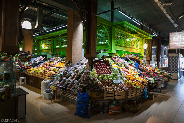 А.В.: Школьный костюм, школьный базар. Сколько школьных базаров сейчас? С деревень едут сюда. Эти все ностальгические вещи мы эксплуатируем и правильно делаем. Так вот, здесь мы сделали офисы, здесь офис большой нефтяной компании. Комплекс в целом от этого выиграл. Здесь сидит на сегодняшний день около 400 белых воротничков. Во-первых, это плюс для нашего общепита (кофе пьют, обедают, ужинают), во-вторых, у нас базар с всегда свежими продуктами, где они берут с собой домой хлеб, молоко, мясо, полуфабрикаты. Мы почувствовали, что работники базара, арендаторы вдохновились.