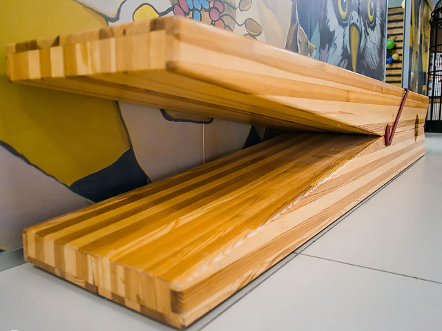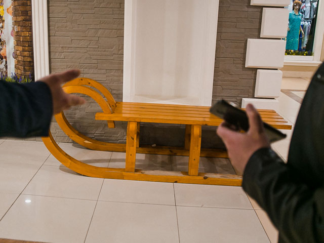 А.В.: Для того, чтобы сделать что-то классное, не всегда нужно стараться придумывать уникальную вещь. Просто хорошая скопированная идея – это тоже идея. Вот башмак. У меня башмачок такой маленький в офисе стоит, я решил его вот таким огромным сделать. Что с ним только ни делают! И садятся на него, и ложатся, сверху встают. Они (посетители) здесь время проводят. Важно ведь, чтобы они не просто сюда зашли, а больше времени провели.