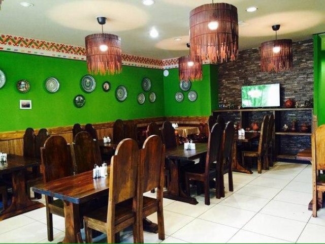Эмблема ашханы повторяет силуэт мечети с минаретами в традиционном для ислама зеленом цвете. Вообще, зеленый цвет почитается у мусульман. В Коране он ассоциируется с райскими благами. Возможно, не все райские блага ждут посетителей кафе на Новомостовой, но вкусно пообедать там вполне реально.