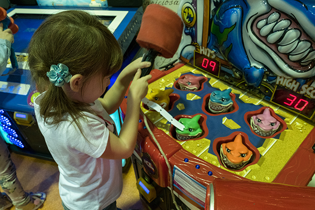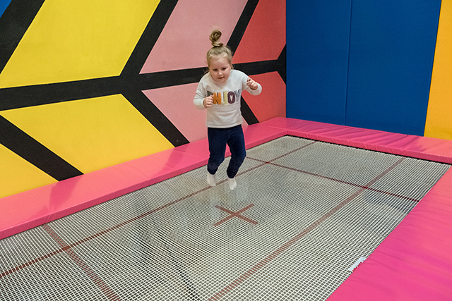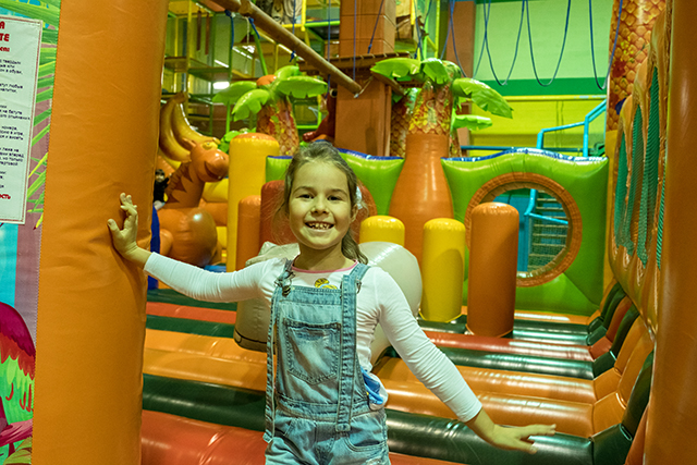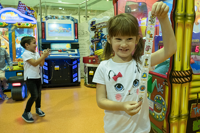 Катя, 5 лет: «Мне понравился вон тот автомат с кнопками голубыми и еще два батута. Хочу прийти с родителями еще много раз».