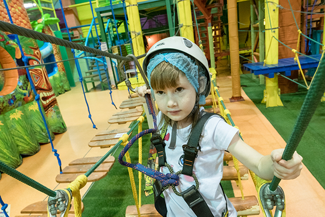 За настоящим детским экстримом стоит прийти в веревочный парк. Он имеет три уровня сложности в зависимости от возраста ребенка. Зеленая трасса - от 4 лет и 90 см, синяя и красная - от 135 см и 145 см соответственно. Если вам захочется разделить захватывающие ощущения вместе с ребенком - вы можете пройти трассу вместе с ним. Конечно, после заполнения обязательной анкеты и прохождения инструктажа со страховочными элементами, но поверьте - оно того стоит. Стоимость зеленой трассы - 150 рублей, синей и красной - по 290. В выходные цена всех уровней поднимается всего на 50 рублей.