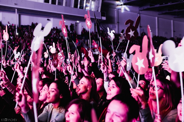 Получасовая пауза вежливости перед концертом пришлась очень кстати. Во-первых, немало публики пришло примерно за 5-10 минут до официального начала концерта, так что пропустить всех разом не получилось. Во-вторых, все успели вдоволь навозмущаться гардеробными правилами: одежду принимали только у тех, кто показывал билет в фан-зону. Спойлер: в зале оказалось довольно прохладно (в самые жаркие минуты концерта температура доходила лишь до 20 градусов), так что без должного движения в общей фанатской толпе или без куртки было все-таки неуютно.