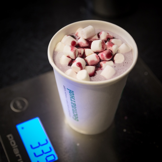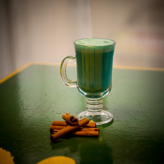Волнительно, но интересно – бокал с розовым напитком. Ага, свёкла во вкусе, кокосовое молоко (вот это подсказали, я бы не поняла) и, конечно, кофе. Эм, не чувствуется вообще. Но вот за смелость плюсик – кто загоняется по овощным сокам, точно оценит. Зелёный, я сразу уточнила – кокосовое молоко + японский зеленый чай «матча» – непривычно, но пробовать стоит. Будит вкусовые рецепторы, бодрит тело и дух. В жёлтом снова молоко кокоса, а ещё специи и куркума, мёд. Боязно, короче, глоточек я сделала маленький – жить можно, и даже не так страшно. Кофе опять-таки не чувствую (фирменный московский, 100% арабика). Жёлтый для тех, кто простужен – прогреть горло. И напоследок голубой, самый интригующий путём получения своего цвета. Молоко, кофе, всё одно и то же снова, а тайный голубой краситель не раскрывают. Барабанная дробь... и я пью молочко. Молочко. С пенкой такое, горячее, вкусное, немного даже на детское смахивает, но никак не кофейный напиток.