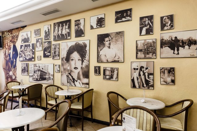 Тихие разговоры за столиками и негласное правило, витающее в воздухе: «Расслабься». Так бы и смотрела на портреты Одри Хепберн или Мерилин Монро, а ещё лучше – Алена Делона, но готовый заказ выдернул меня из сладких грёз о кабриолете и развевающемся по ветру шелковом шарфике.