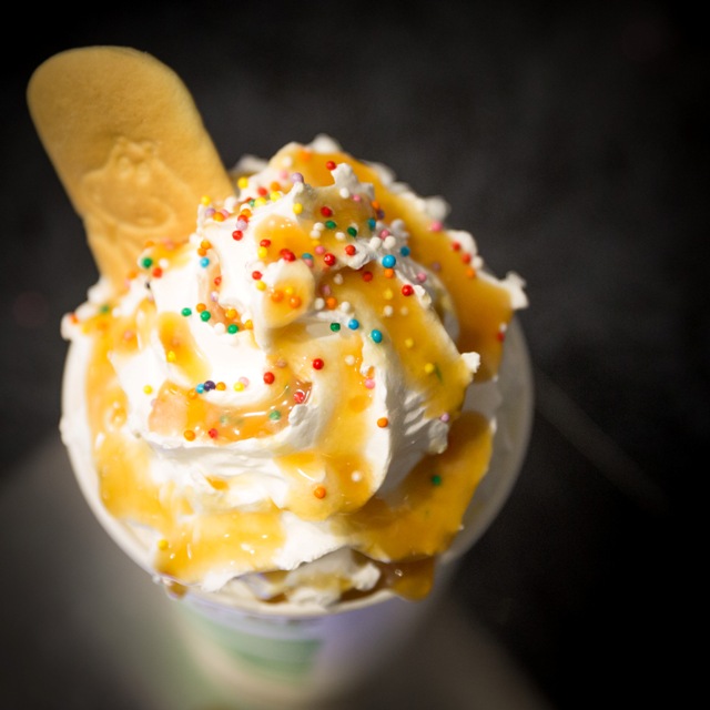 Эскапо так красив – с цветными слоями и шапочкой из воздушных  сливок ( готовятся на специальной итальянской машине )  с  ирландским и шоколадным сиропом, потрясающий вкус .