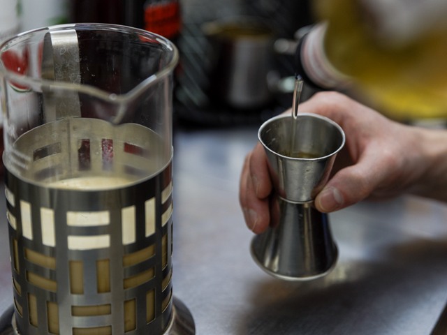 Пока заливаюсь первыми порциями кофейного лекарства, Александр цепким взглядом оценивает кофемашину и сорт кофе, попутно выдавая краткий ликбез: «Кофе: основа основ – эспрессо, американо, капучино, латте. А всё остальное, вкусненькое и сладенькое, во что, помимо кофе/молока/сливок, добавляются сиропы и различные ингредиенты – это «кофейные коктейли» или кофейные напитки». В Уфе очень популярны именно они – народ диктует спрос, под него подстраивается предложение. К серьёзной теме кофейной культуры в Уфе вернёмся позже, потому что я пробую пунш. Как бабушкин антипростудный чай – с ароматом листочков смородины и мяты с дачи, согревающий и успокаивающий.