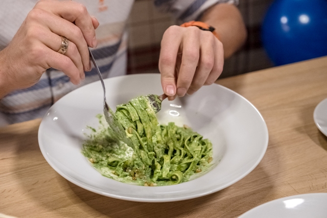 Но больше всего повезло дочке, ведь самостоятельно приготовить пиццу в ресторане доверяют не каждый день. Хоть тут она и проявила небольшую сдержанность в выборе ингредиентов, но на выходе получился вполне себе классический продукт, который почти не отличишь от того, что делает настоящий пиццайоло.