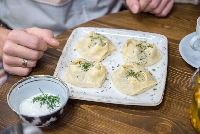 Чего не могу сказать про манты, ах, какие это были манты… Рубленая баранина, лук, специи – я не знаю, как описать эту гамму вкуса, это надо просто пробовать. И надеюсь, что не надо напоминать: никаких вилок, только руками.