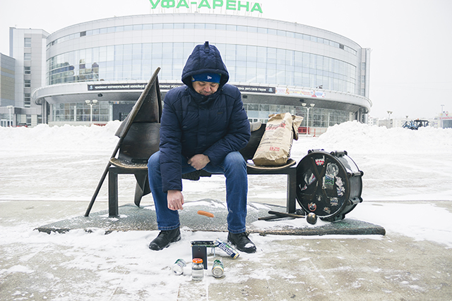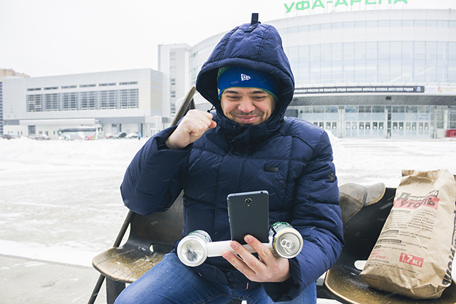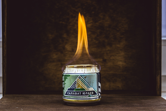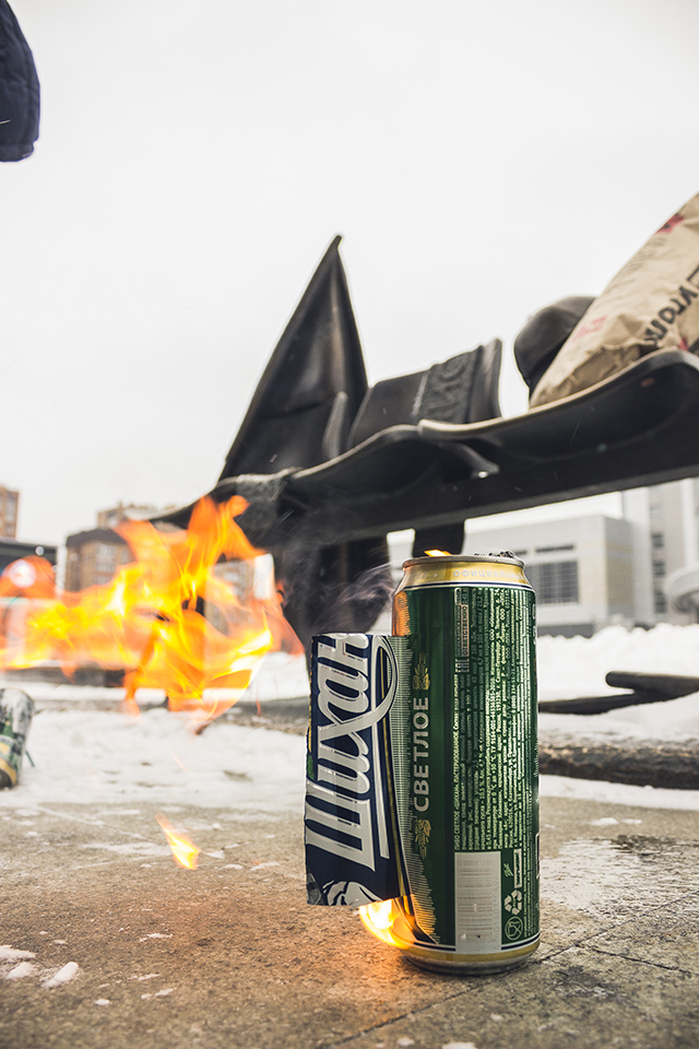 Сегодня, забавы ради, я пришел на памятник хоккейному болельщику, чтобы посмотреть хоккей в одно лицо, так сказать, а заодно опробовать свои поделки из пивных банок. Особая серия банок Шихана, посвященная ХК «Салават Юлаев», подходит для этого, как нельзя лучше. С пивом на Арену теперь нельзя, зато из жестянок можно сделать кучу всего полезного для сурового мужского вечера.