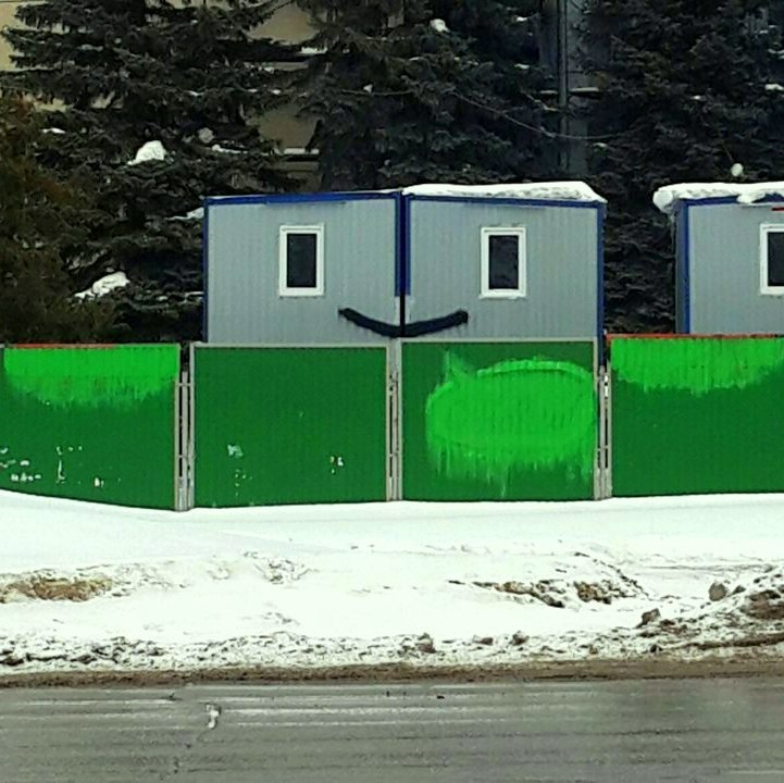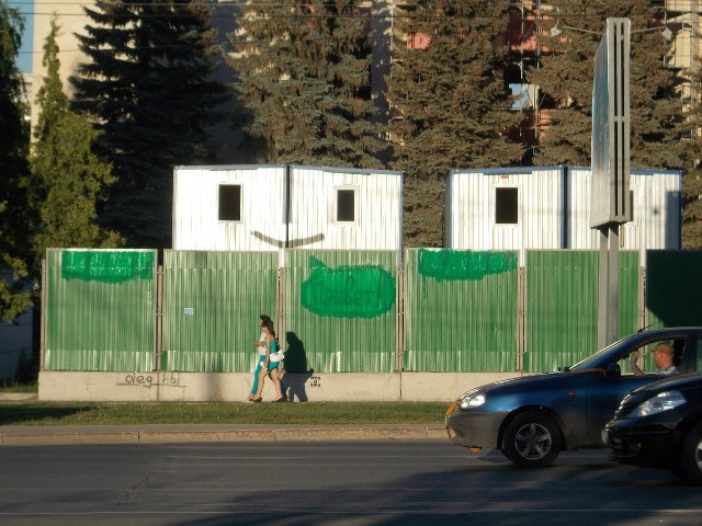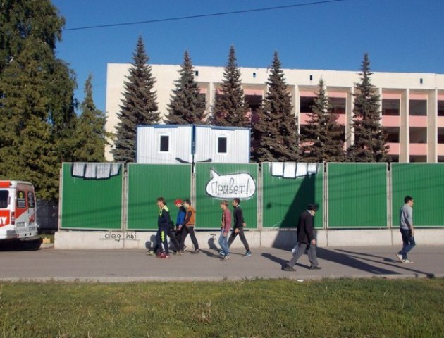 А вот пример, когда с рисунком расправились очень быстро. Когда красоту нужно уничтожить, а уродство игнорировать. В районе остановки Театр Кукол известный уфимский художник изобразил гениальный в своей простоте рисунок «Привет!».