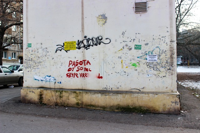 Вооружены они обычно не только баллончиками с краской, но и заранее подготовленными трафаретами, для экономии времени. Предлагают стандартное: наркотические вещества, работу связанную с продажей наркотиков, круглосуточный алкоголь и многое другое запрещенное. Знаете, как сотрудники ЖЭУ борются с подобным злом? Никак. Надписи на стенах, которые вы видите на фотографиях ниже, сделаны не день, и даже не месяц назад. Им всем около года и как видите - бороться с этой проблемой никто не собирается.