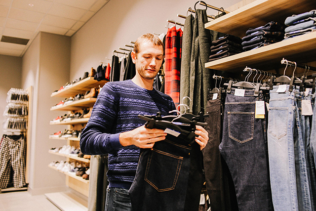 Рома взял быка за рога и полностью обновился в H&M. Заметка для мужчин: даже если та рубашка, что вам приглянулась, уже десятая по счету в гардеробе, а все джинсы всегда одинаковые - это глупости. Главное, для вас все разное. В конце концов, девушки не объясняют, зачем им пять пар одинаковых туфель, отличающихся лишь цветом.